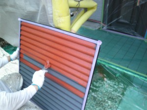 そして主材1回目を塗り終えた雨戸です。