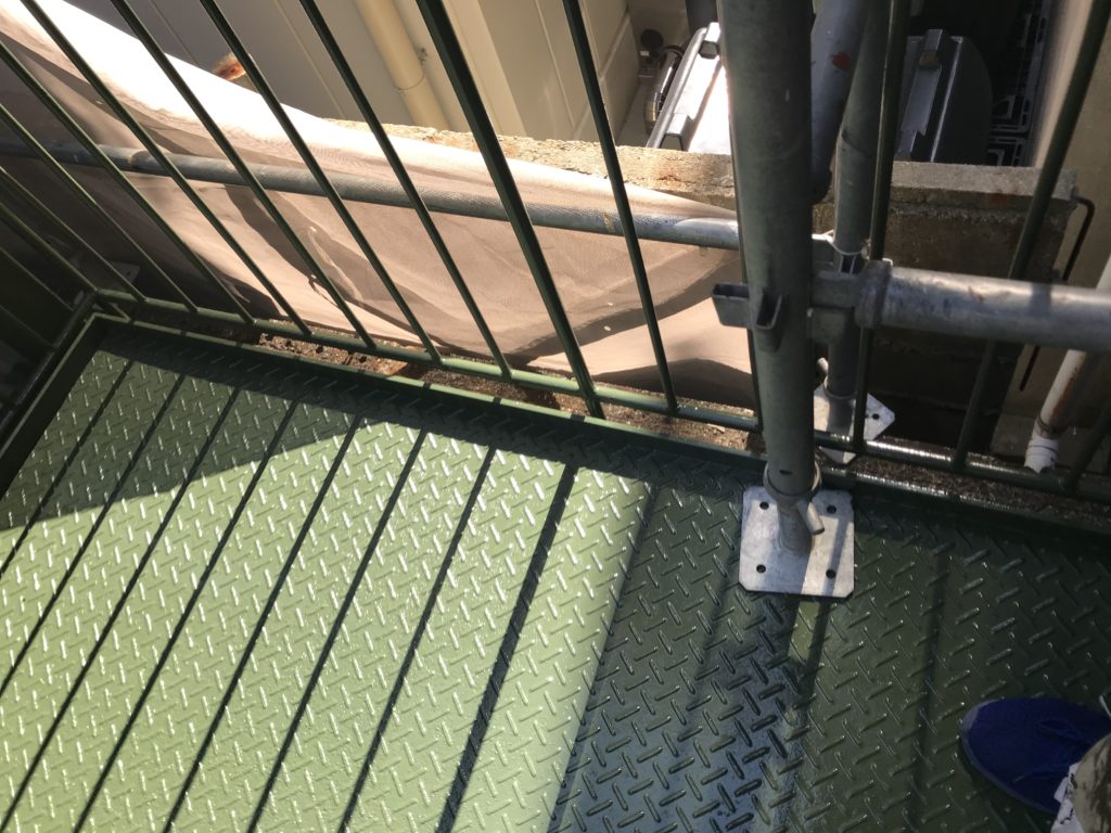 本日は、ハイツ外部にある鉄骨階段と受水槽の上塗り塗装の様子を紹介させていただきます。